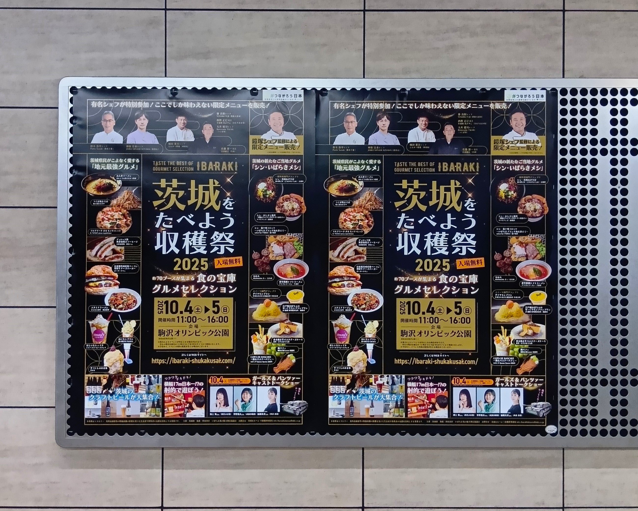 都営地下鉄駅で「茨城をたべよう収穫祭2025」のポスターを掲出しています。